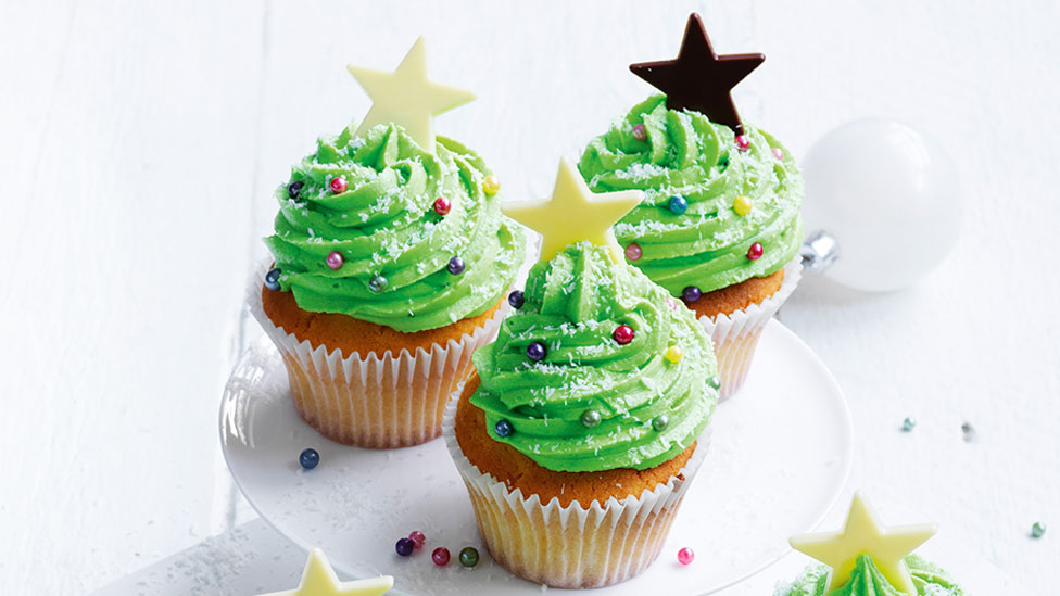 - Spoon icing into a large piping bag fitted with a 1.5cm fluted nozzle. Pipe icing onto each cupcake in a tree shape.
